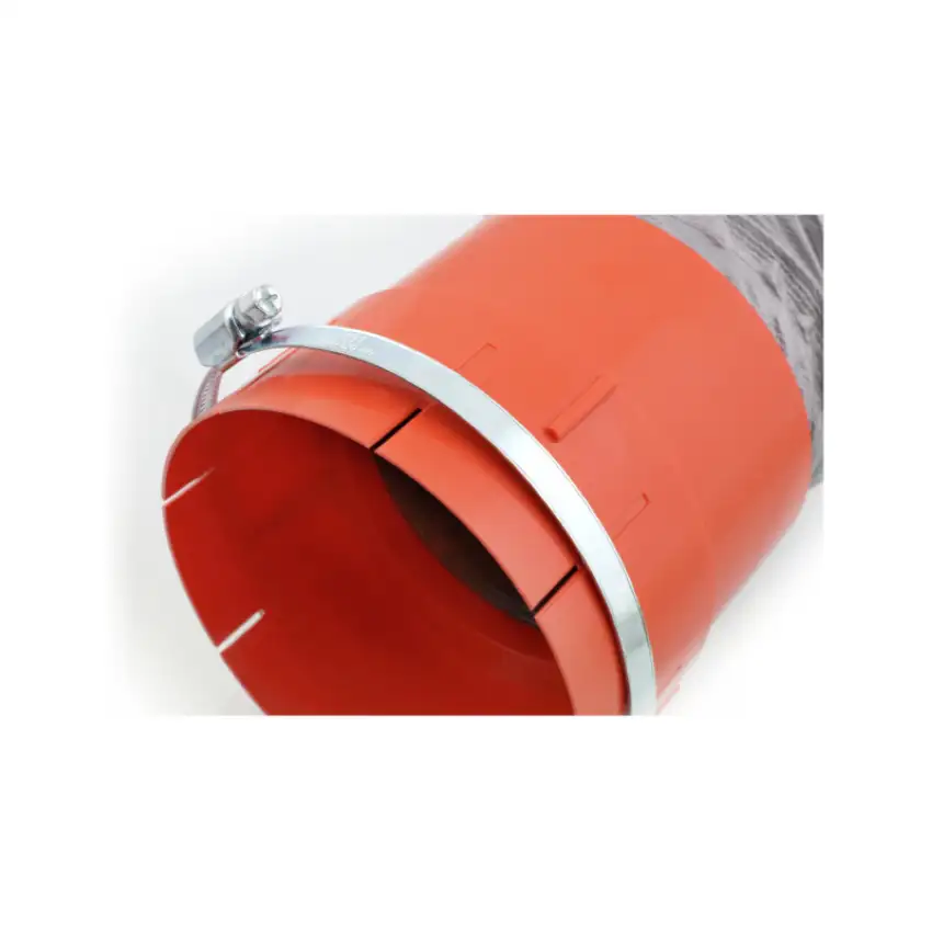 Daugybė plyšių jungiamosios movos perimetro (DN 100) užtikrina idealų pritaikymą ir prijungimo prie atitinkamo vamzdžio galimybes.