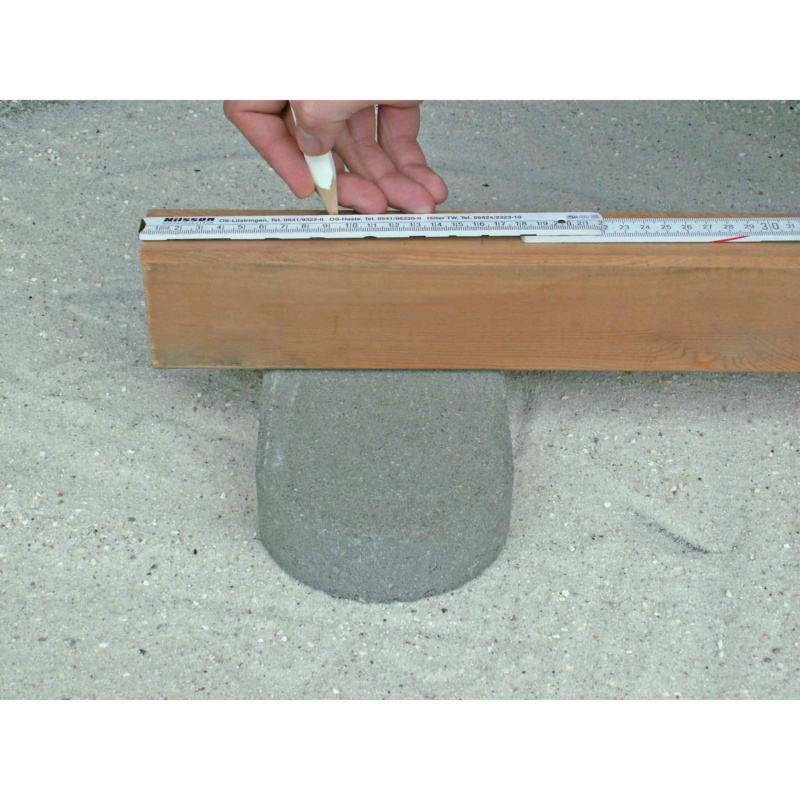 RECA TT išlyginamoji kojelė turi būti montuojama maždaug. 50-100 cm. Atkreipkite dėmesį į gniuždymo stiprumą (apie 200 kg vienai išlyginimo pėdai) ir suplanuokite reikalingą RECA TT išlyginamųjų pėdų skaičių pagal jūsų poreikius. Pažymėkite atstumą, apskaičiuotą apatinėje pagrindo pusėje, ir grąžtu (skersmuo 10 mm) iš anksto išgręžkite iki 35–40 mm gylio. Tada T veržlę galima įsukti į gręžimo angą. Dabar įsukite išlyginimo koją į T veržlę. Norint išlyginti daugiau nei 30 mm, RECA TT pakloto padėklas taip pat gali būti klojamas po išlyginimo kojele. Pagrindas gali būti išlygintas atsukant ir vėl prisukant.